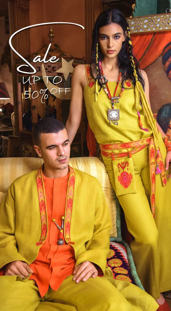 Sleeveless tunic dress in linen with contrasting color trims E£9,999.00 E£4,999.00